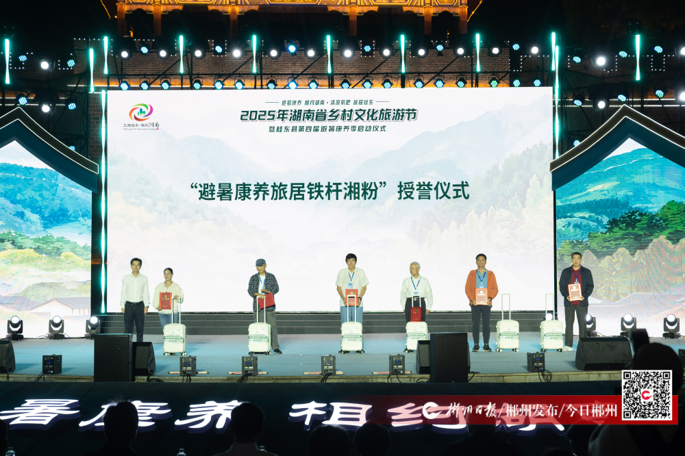6月17日晚,在2025年湖南省鄉(xiāng)村文化旅游節(jié)暨桂東縣第四屆避暑康養(yǎng)季啟幕活動上,謝自能等6名省內(nèi)外游客被授予“避暑康養(yǎng)旅居鐵桿湘粉”和桂東避暑康養(yǎng)“鐵桿粉絲”稱號。