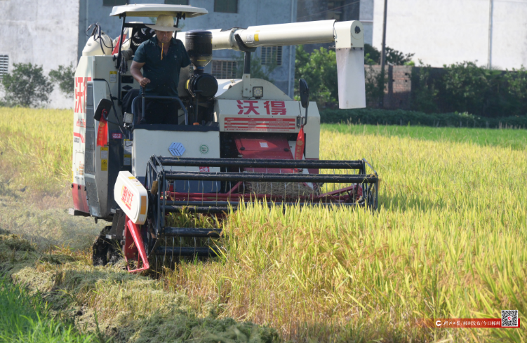7月15日,烈日高懸,田野里蒸騰著熱浪。洪溪村金黃色的早稻田里,臉龐黝黑的周光紅正用一只右手熟練地駕駛著收割機來回穿梭,掛擋、前進、收割、脫粒一氣呵成,隨后,顆粒飽滿、黃澄澄的稻谷被運送到路旁的貨車上?!坝辛耸崭顧C、耕田機、插秧機等農(nóng)機,我種的150多畝稻田,搶收、搶插只要一周?!敝芄饧t說著,臉上露出了質(zhì)樸的笑容。