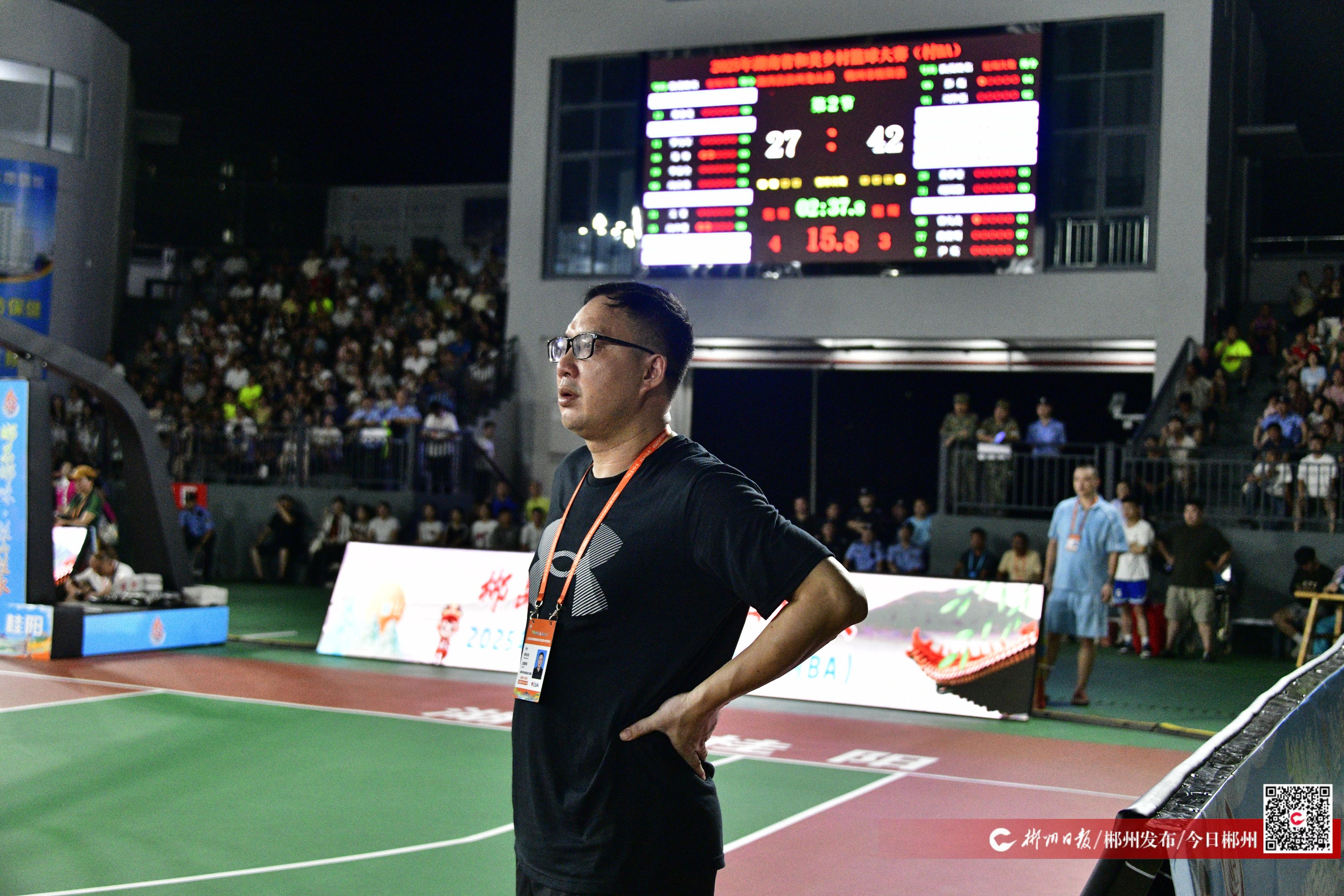 7月17日晚,“郴品郴味 桂山桂水”2025年湖南省和美鄉(xiāng)村籃球大賽(村BA)進入四強爭奪戰(zhàn)。桂陽縣代表隊與湘西龍山縣代表隊的比賽在20時30分開打,但桂陽隊主教練陳光龍19時就出現(xiàn)在桂陽金葉籃球場,仔細觀摩懷化市辰溪縣代表隊與懷化市溆浦縣代表隊之間的比賽?!斑M入八強的隊伍都是勁旅,觀察他們的技戰(zhàn)術(shù)特點,可以有針對性地調(diào)整我們隊伍的戰(zhàn)術(shù)?!标惞恺堈f。