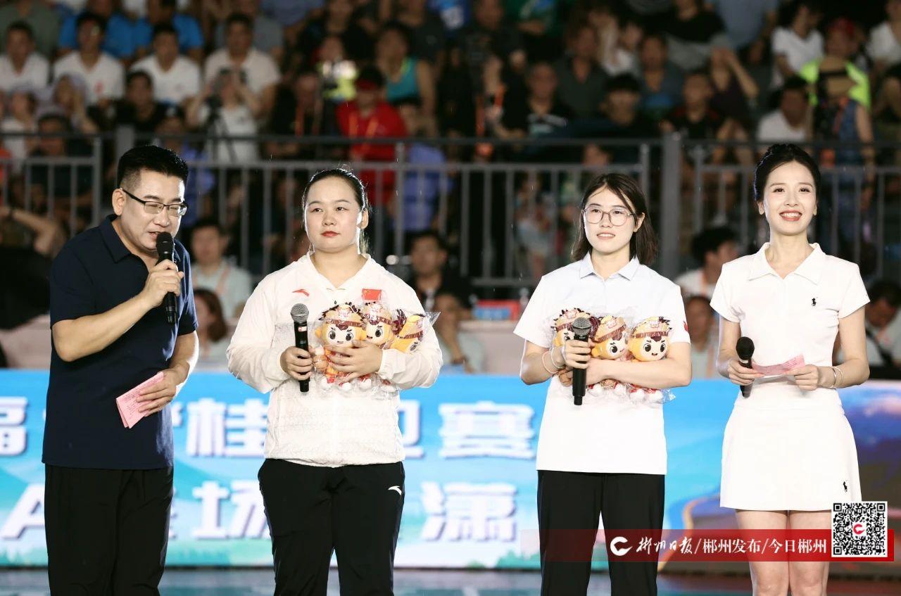 7月12日晚,隨著《二十四節(jié)令鼓》的鼓點(diǎn)響起,“村BA”火熱開幕,桂陽籍世界舉重冠軍張旺麗、殘奧會(huì)冠軍史逸婷帶著吉祥物為球隊(duì)打call,瞬間點(diǎn)燃了全場(chǎng)觀眾的熱情。
