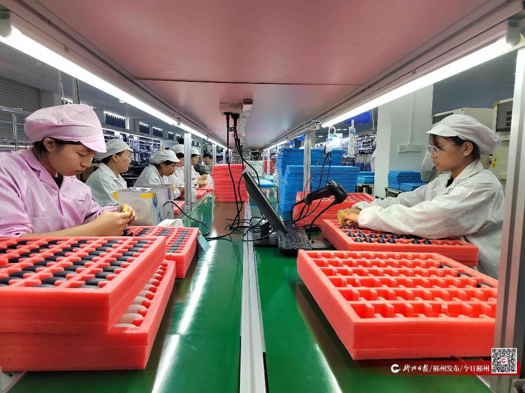 同一時(shí)間,安仁產(chǎn)業(yè)開(kāi)發(fā)區(qū)的生產(chǎn)車(chē)間內(nèi)熱火朝天。湖南三耳電子科技有限公司內(nèi),800余名工人身著統(tǒng)一工裝,在流水線前嫻熟裝配、檢測(cè),傳送帶上的藍(lán)牙耳機(jī)元件如流水般移動(dòng)?!坝唵闻诺矫髂?月,今年10月將新增生產(chǎn)線,擴(kuò)招1500人,才能跟上節(jié)奏?!痹摴究偨?jīng)理童勝難掩喜悅,今年產(chǎn)值有望突破1.2億元,創(chuàng)歷史新高。