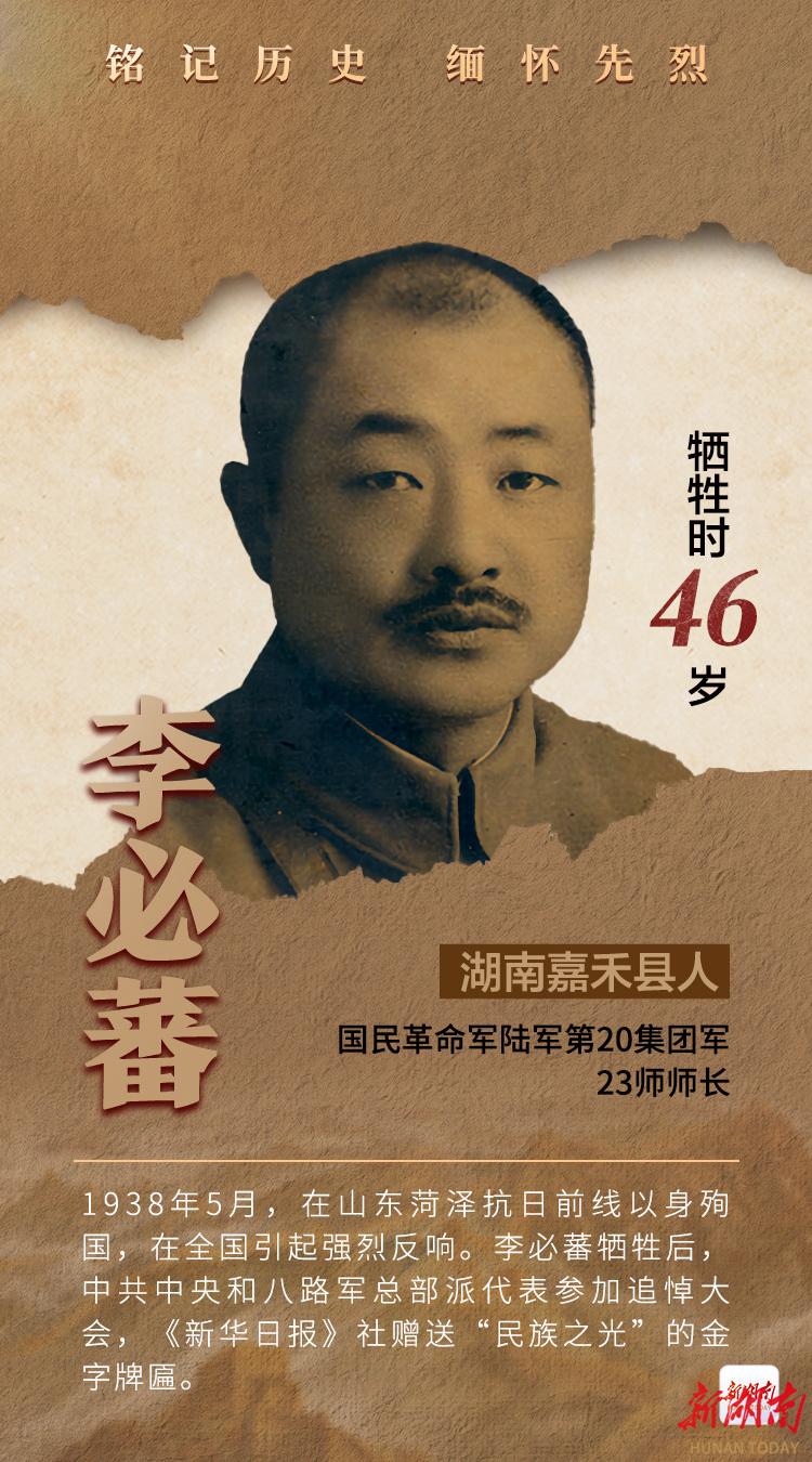 2009年,李必蕃等在抗戰(zhàn)中犧牲的湘籍國(guó)民黨將領(lǐng),首次作為湘籍著名烈士陳列在湖南烈士公園的烈士紀(jì)念塔內(nèi),供人瞻仰。