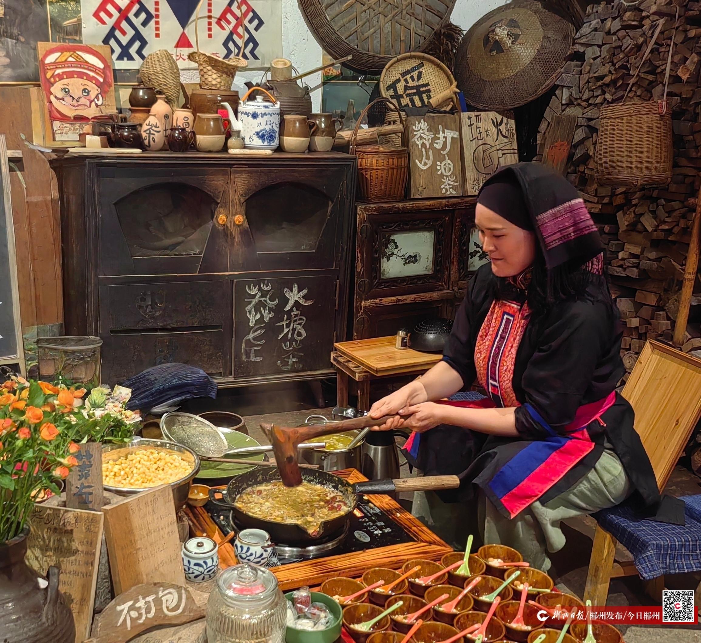 莽左火塘油茶舍便是典范。門面不大,卻內(nèi)有乾坤——布置精巧,充滿瑤族風(fēng)情。游客圍坐一圈,一邊品嘗主理人親手制作的打油茶,一邊了解瑤族文化的點(diǎn)滴,體驗(yàn)瑤族火塘文化、門板宴、坐歌塘、瑤繡等民俗。