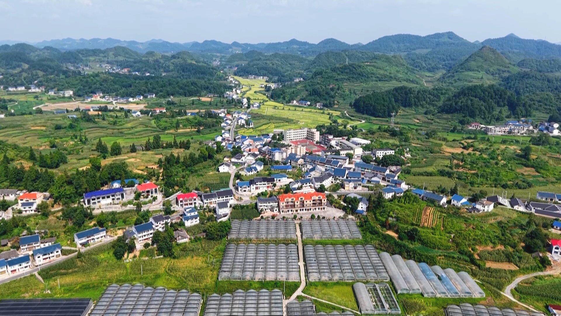 太陽(yáng)能路燈下,鄉(xiāng)村柏油公路綿延向前,路邊每隔一段就擺放著垃圾箱;黔北特色民居,灰磚黛瓦,水電全通,燒飯用上了天然氣;人工濕地污水處理站,利用自然生態(tài)系統(tǒng)中物理、化學(xué)、生物的