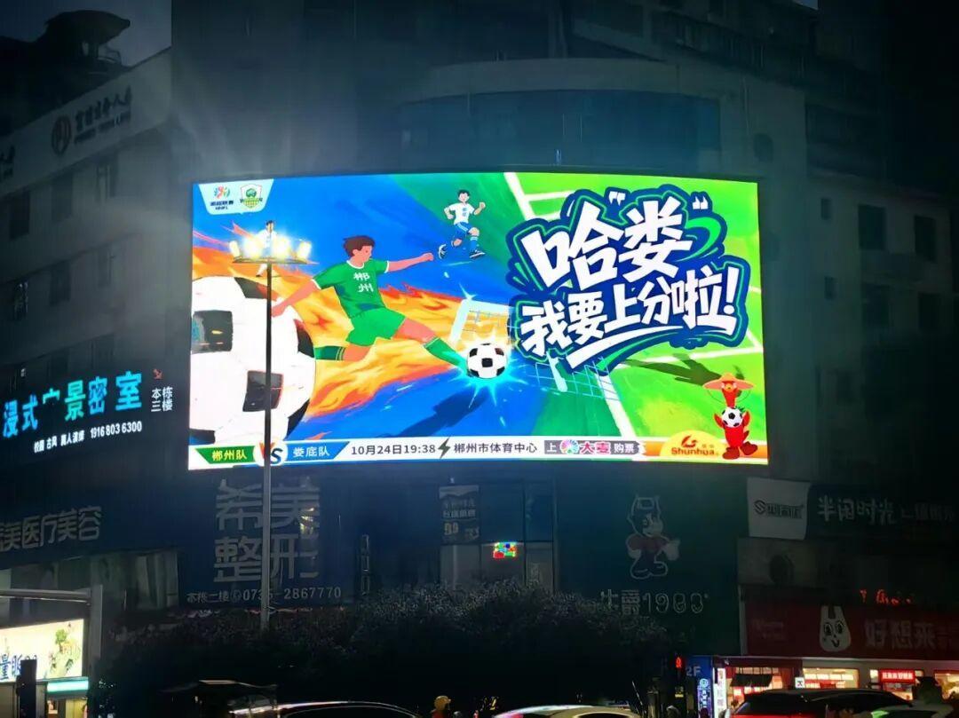 秋夜里,郴州市體育中心的燈光如鎏金般灑向綠茵場,看臺上展開的“郴州蹬起”巨型海報(bào),將秋夜的寒意瞬間融化成暖流。