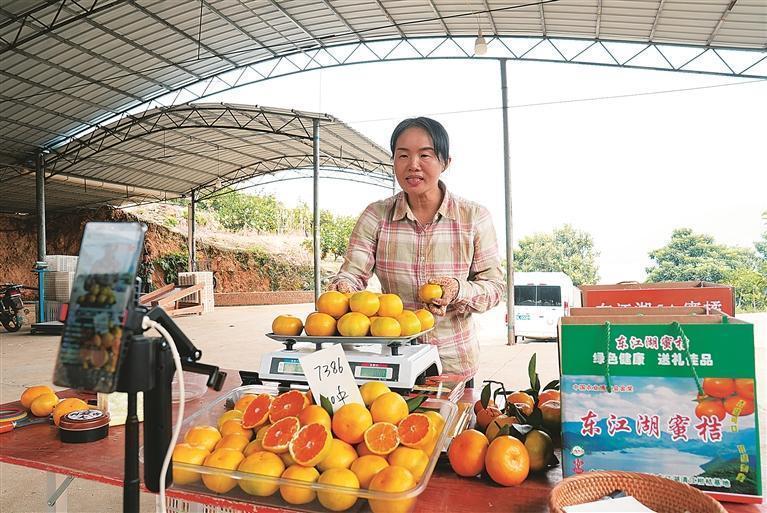 “家人們看過來,自家果園剛摘的東江湖蜜橘,皮薄肉嫩,汁水足!”來到劉麗的果園,她正在電商平臺(tái)直播。