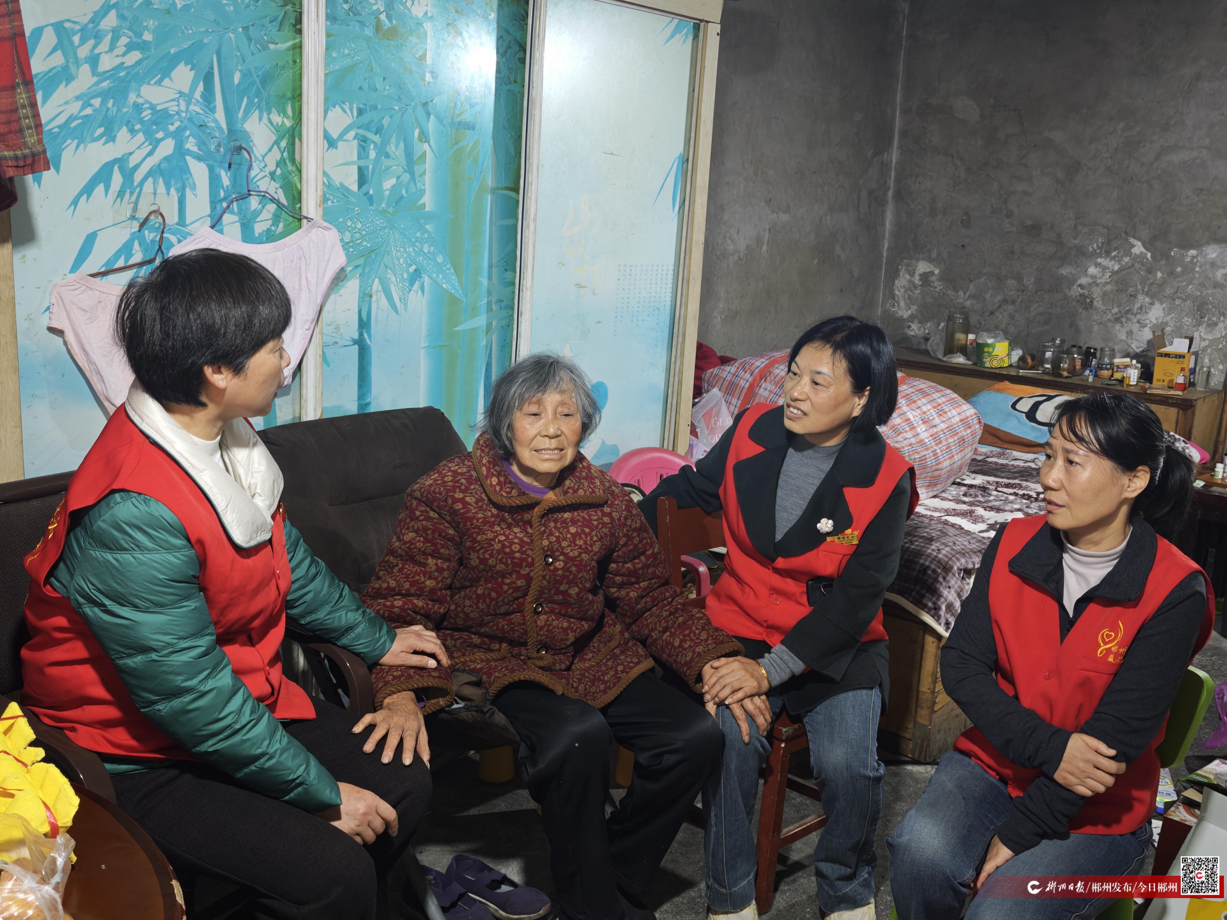 12月20日,冬至前夕,郴州市益行志愿者協(xié)會(huì)“讓銀發(fā)不再孤寂”項(xiàng)目組的4名志愿者來(lái)到蘇仙區(qū)四普莊社區(qū),看望獨(dú)居困難老人范金芽,為她送去節(jié)日的溫暖。