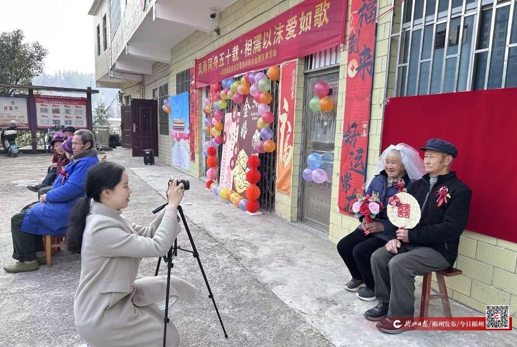 12月30日上午,桂陽縣蓮塘鎮(zhèn)潘泉村黨群服務(wù)中心院內(nèi)暖意融融。十對(duì)平均年齡超過75歲的老夫婦胸佩“金婚紀(jì)念”紅花,在志愿者攙扶下緩緩步入會(huì)場(chǎng)。一場(chǎng)樸素而莊重的“金婚慶典”在此舉行。