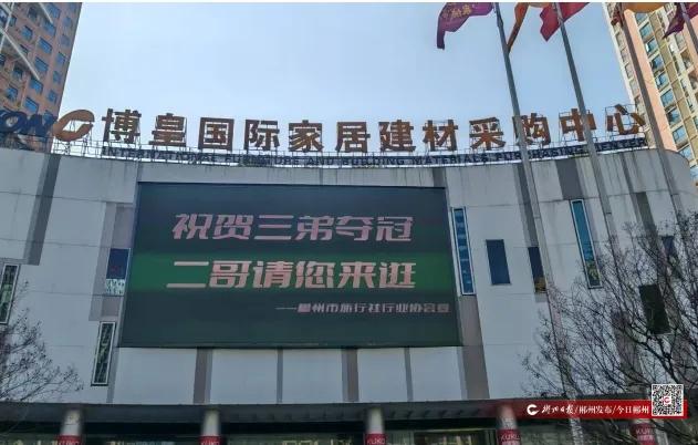 “祝賀三弟奪冠,二哥請你來逛”“永州不遠(yuǎn),郴州很近;十泉十美,用心暖你”……近日,這些暖心的標(biāo)語點(diǎn)亮了郴州城區(qū)各黃金路段的LED大屏,為鄰城永州送上真摯祝福。