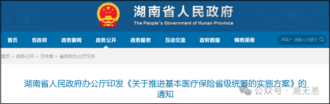 湖南省人民政府辦公廳印發(fā)《關(guān)于推進基本醫(yī)療保險省級統(tǒng)籌的實施方案》的通知