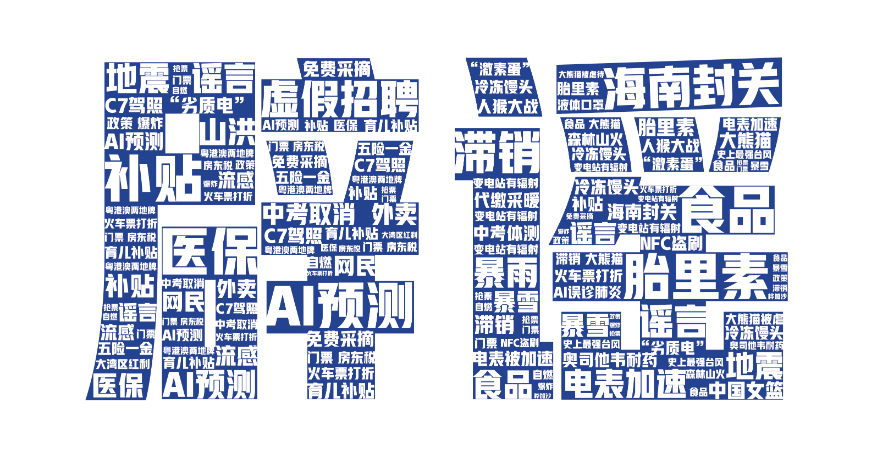 (2025年度網(wǎng)絡(luò)謠言部分熱詞云圖)