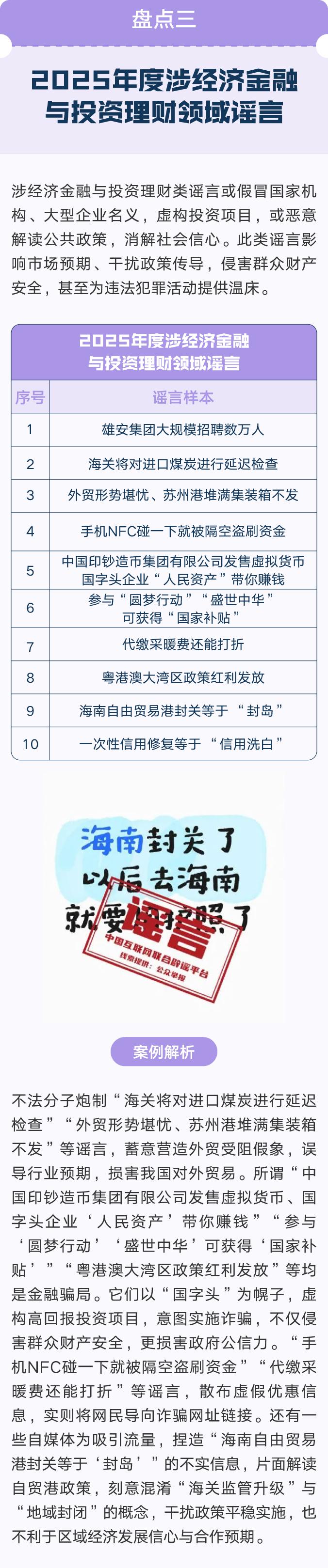 歲末年初之際,中國互聯(lián)網(wǎng)聯(lián)合辟謠平臺特此盤點2025年度網(wǎng)絡(luò)謠言,對于過去一年傳播較廣、誤導(dǎo)性強的熱點謠言,拆解套路、廓清迷霧、錨定真相。