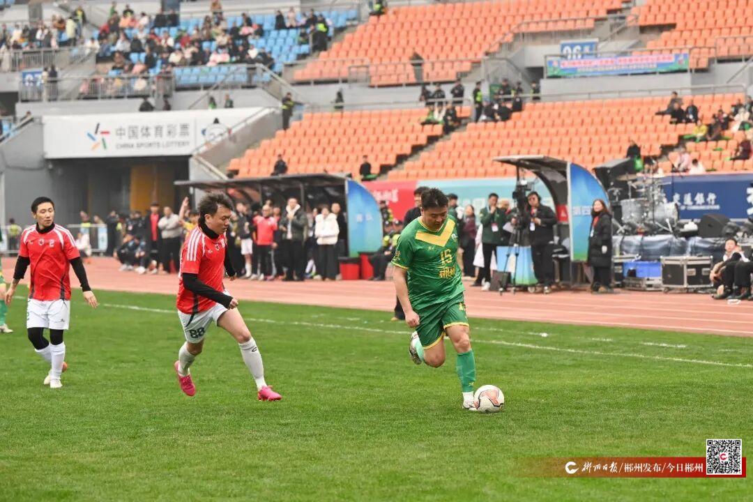 1月25日,郴州“綠茵激情?為愛而燃”明星足球邀請賽在郴州市體育中心打響。郴州隊(duì)VS中國搖滾明星隊(duì)。比賽13分鐘內(nèi),郴州隊(duì)王博和郭傳磊破門得分,目前比分2-0。
