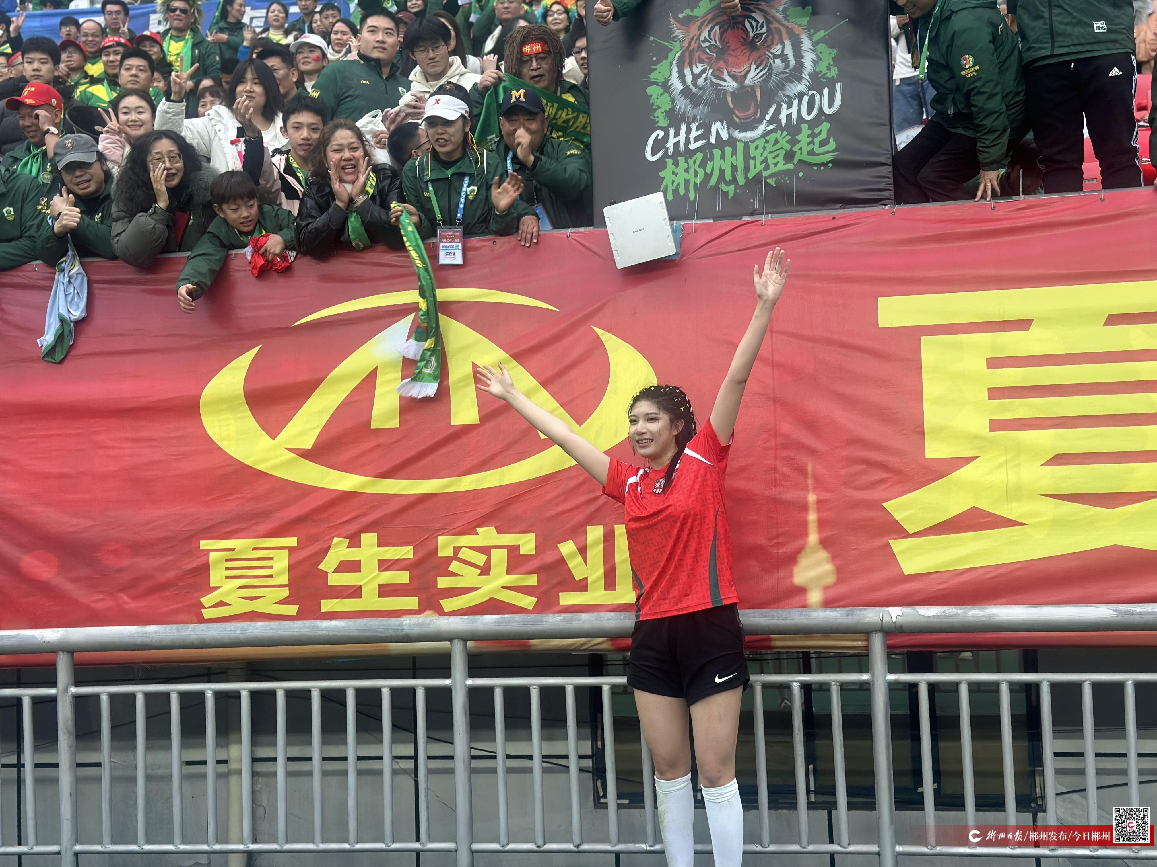 “沒想到郴州的賽事氛圍那么好!”這是楊玥晞賽后最直觀的感受。盡管見慣了職業(yè)賽場的山呼海嘯,但郴州市體育中心看臺上持續(xù)不斷的吶喊助威,以及那些充滿本地文化特色的球迷歌曲,依然給她帶來了新鮮的觸動?!八麄冞€創(chuàng)作了很多關于郴州足球文化的球迷歌曲,我覺得非常棒。”在她看來,這些充滿本地特色與自發(fā)熱情的助威方式,讓她看到了足球文化的另一種模樣。