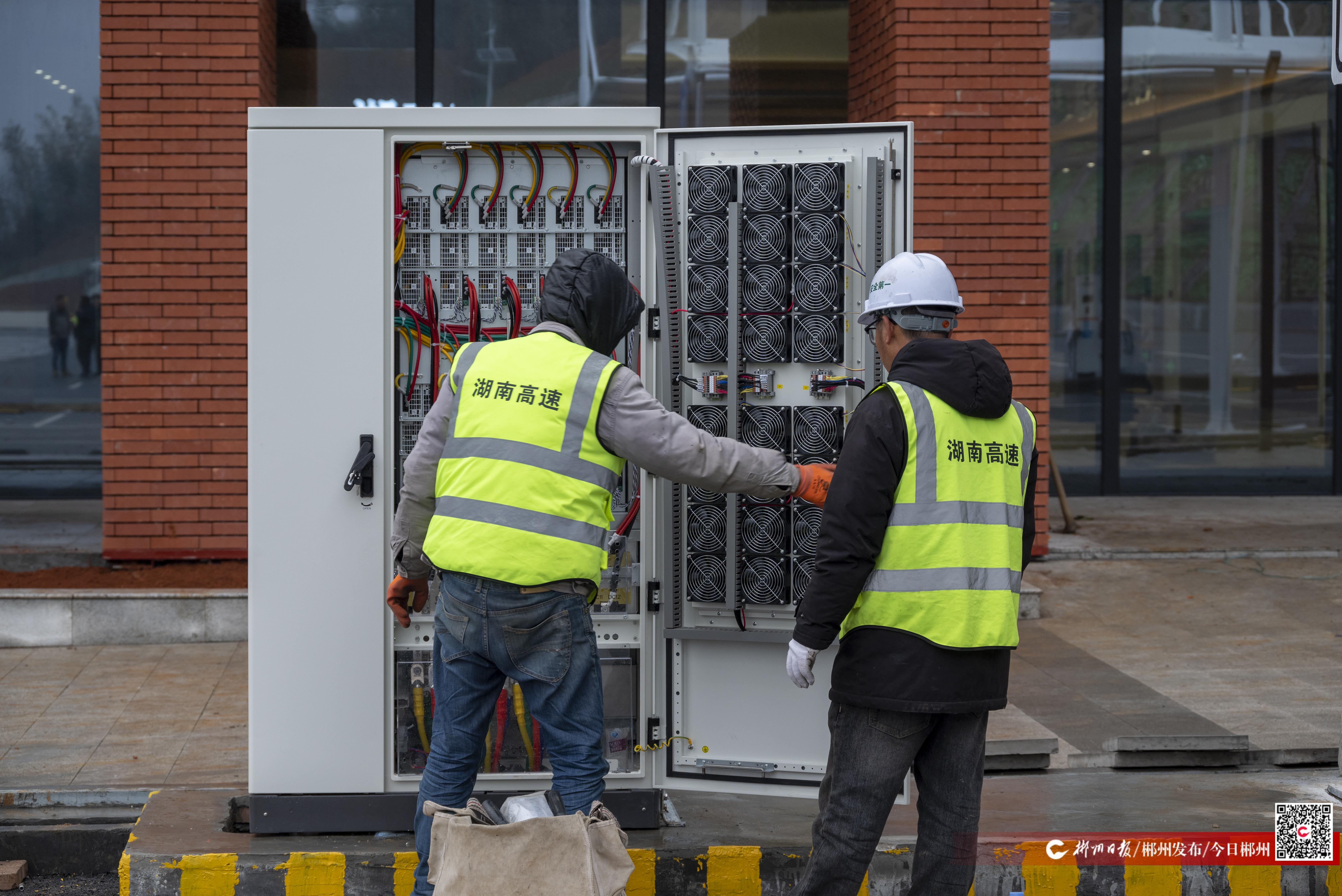 同步完工的還有新建的郴州服務區(qū)。記者在現場看到,服務區(qū)主體建筑整潔嶄新,便利店已做好營業(yè)準備,加油站、衛(wèi)生間等設施齊全可用,部分餐飲店鋪尚在進行內部裝修收尾。場地上,7個快充樁和1個超充樁已安裝完畢,技術人員正進行最終線路檢查。該服務區(qū)將在通車時提供加油、充電、購物、如廁等基本服務,后續(xù)商業(yè)配套將逐步完善。