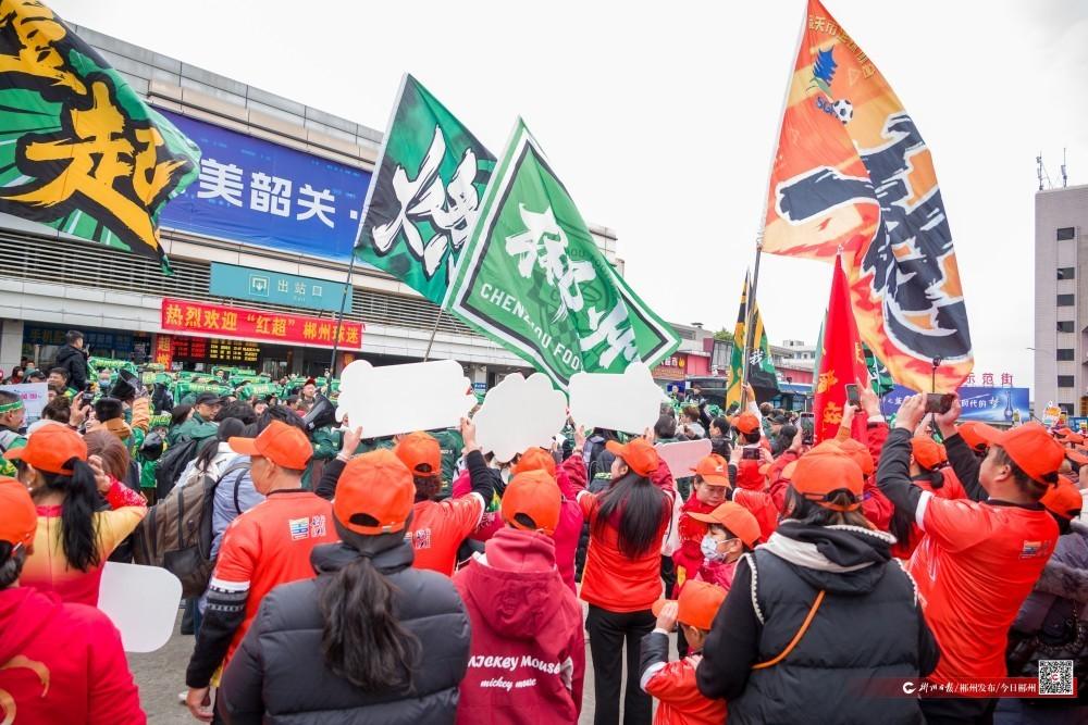 1月31日12時(shí)許,搭載著近千名郴州球迷的專列緩緩駛?cè)肷仃P(guān)東站。這批身著統(tǒng)一綠色助威服的“遠(yuǎn)征軍”,專程前來為下午在韶關(guān)西河體育中心舉行的“紅超”足球聯(lián)賽中客場(chǎng)作戰(zhàn)的郴州隊(duì)吶喊助威。