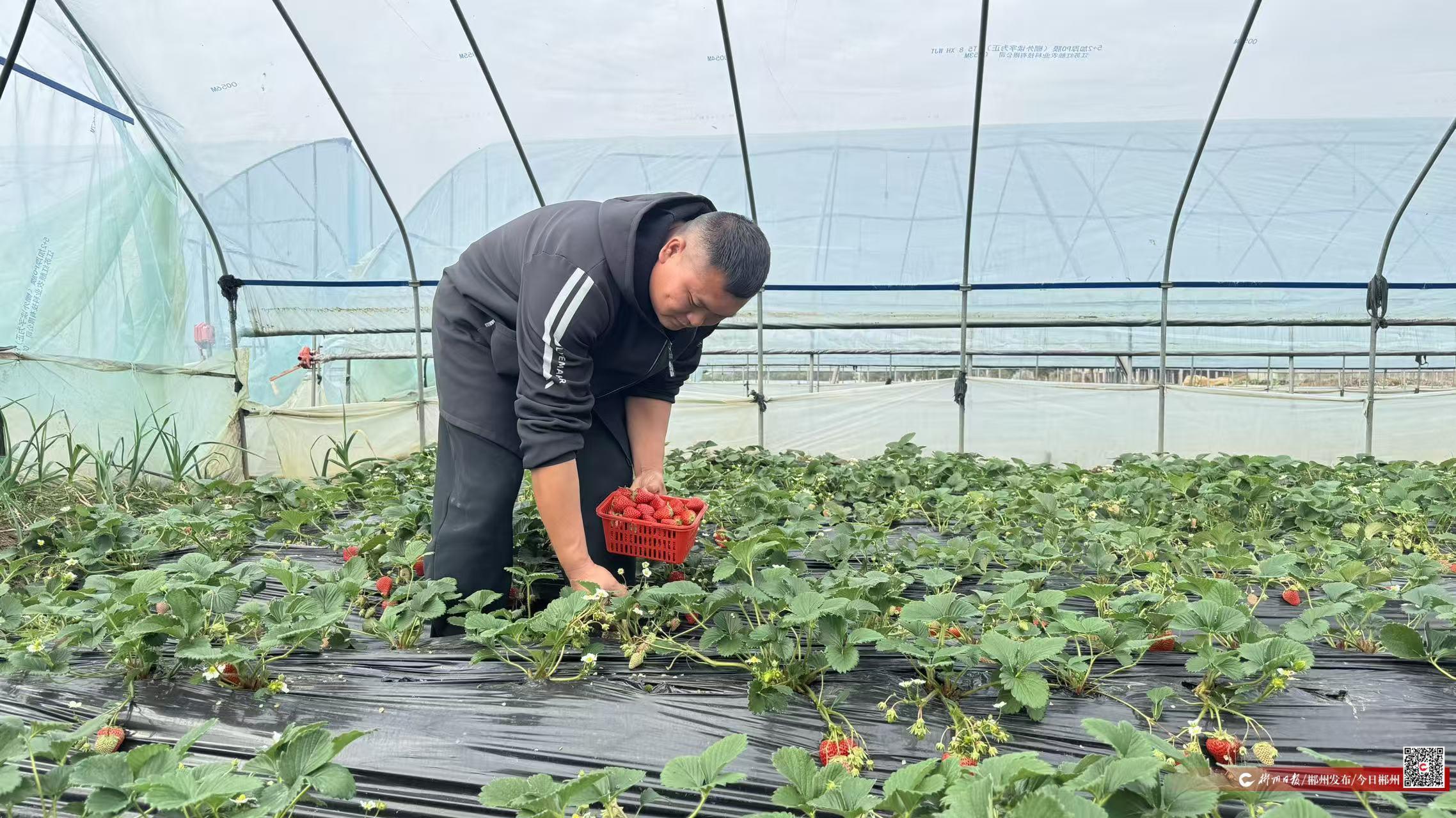 2月7日凌晨1點,北湖區(qū)華塘鎮(zhèn)塔水村的草莓大棚里,頭燈的光束劃破漆黑的夜空。歡樂家庭農(nóng)場負責人曹衛(wèi)和妻子彎腰穿梭在壟間,指尖輕捻一顆顆飽滿的草莓,放入籃中?!斑@是今天要發(fā)往郴州精品水果店的貨,得趕在天亮前摘完?!辈苄l(wèi)的聲音帶著疲憊,卻透著一股堅定。他身后,父母也在忙碌,一家四口忙碌的身影在大棚里晃動。