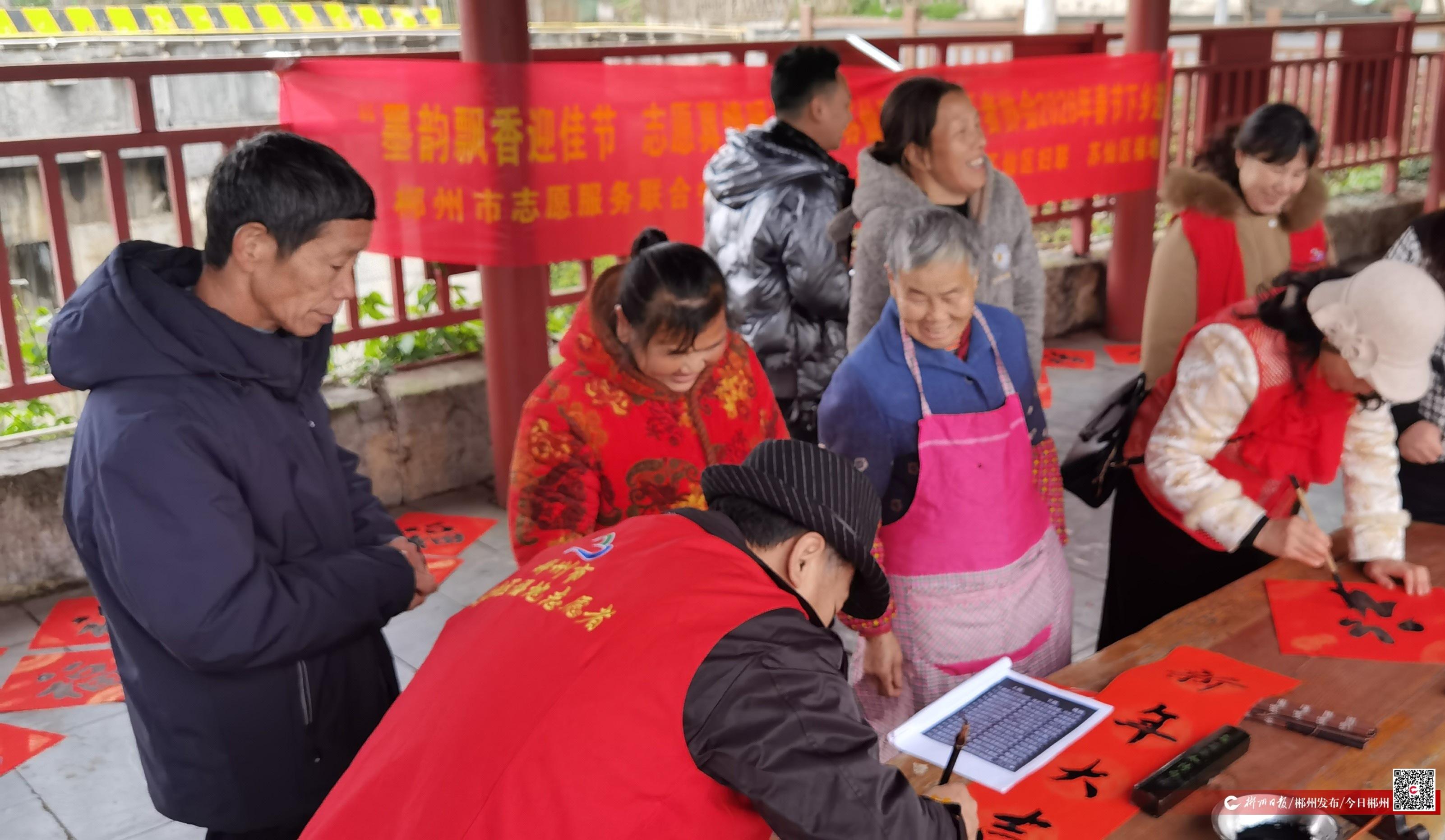 為了讓行動不便的老人、留守兒童也能感受到節(jié)日的溫暖,蘇仙區(qū)福地志愿者協(xié)會會長李艷蘭帶領(lǐng)志愿者們組成“送福小分隊”,帶著寫好的春聯(lián)和福字挨家挨戶上門贈送。每到一處,志愿者們都與老人、留守兒童親切交談,詳細詢問他們的生活情況,為他們送上新春的祝福和問候。據(jù)統(tǒng)計,此次活動中志愿者們共為村民書寫贈送春聯(lián)100余副、福字200余個。