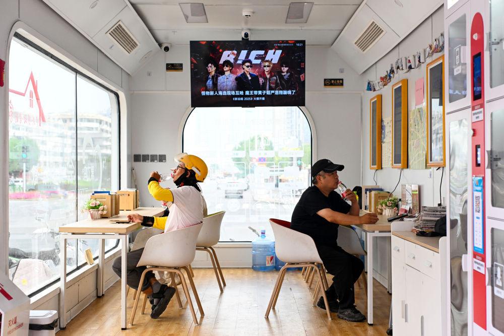 2025年6月9日,幾名戶外勞動(dòng)者在天津市河西區(qū)文化中心工會(huì)驛站休息。2025年12月發(fā)布的數(shù)據(jù)顯示,全國(guó)已建工會(huì)驛站18萬個(gè)、貨車司機(jī)之家2187個(gè),有效解決勞動(dòng)者“吃飯難、喝水難、休息難、如廁難”等現(xiàn)實(shí)問題。