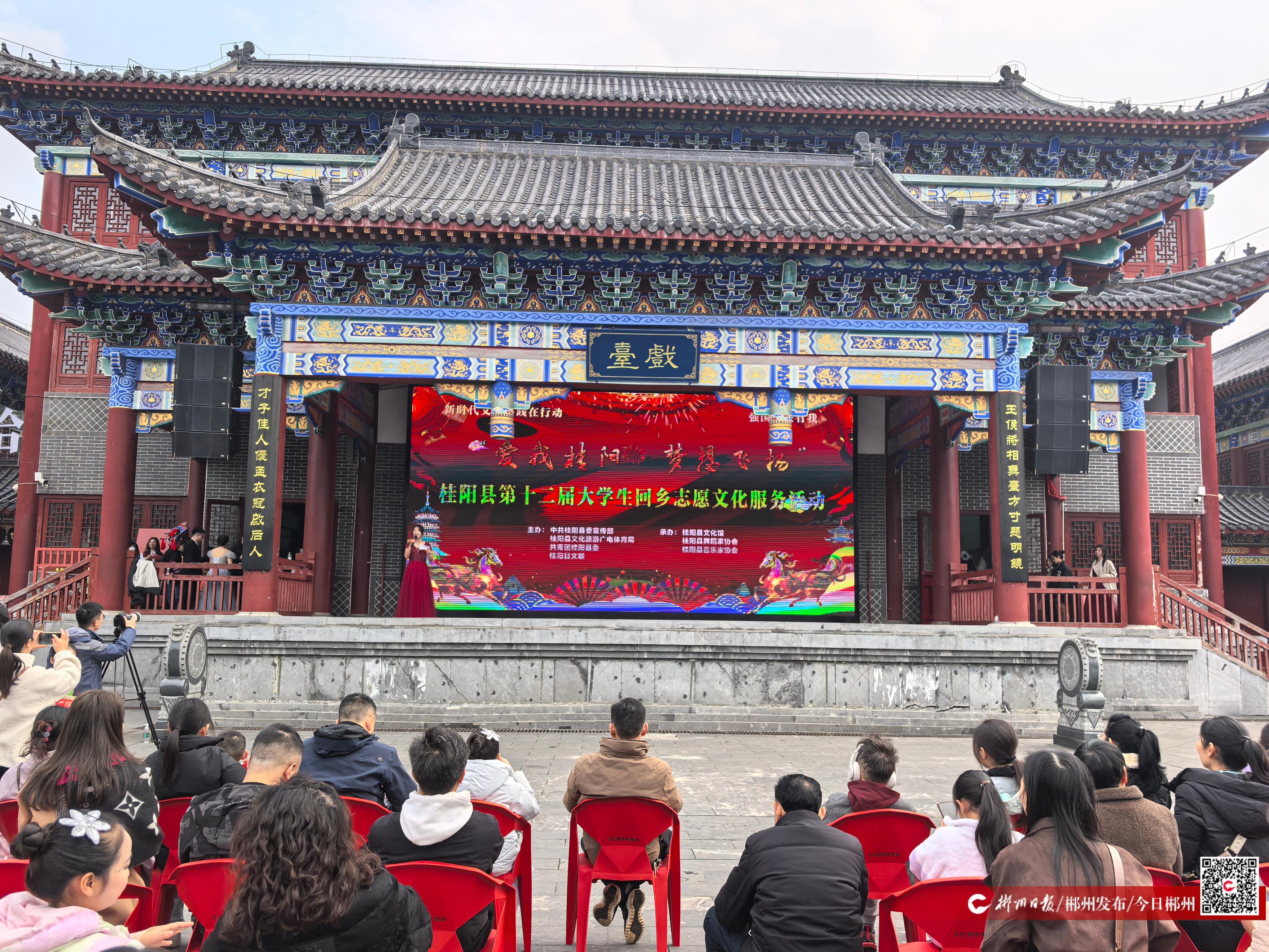 2月13日,桂陽(yáng)文化園古戲臺(tái)前人來(lái)人往、熱鬧非凡?!皭?ài)我桂陽(yáng)·夢(mèng)想飛揚(yáng)”桂陽(yáng)縣第十二屆大學(xué)生回鄉(xiāng)志愿文化服務(wù)活動(dòng)在此舉行,為家鄉(xiāng)人民獻(xiàn)上了一場(chǎng)洋溢著青春氣息與家鄉(xiāng)情懷的視聽(tīng)盛宴。