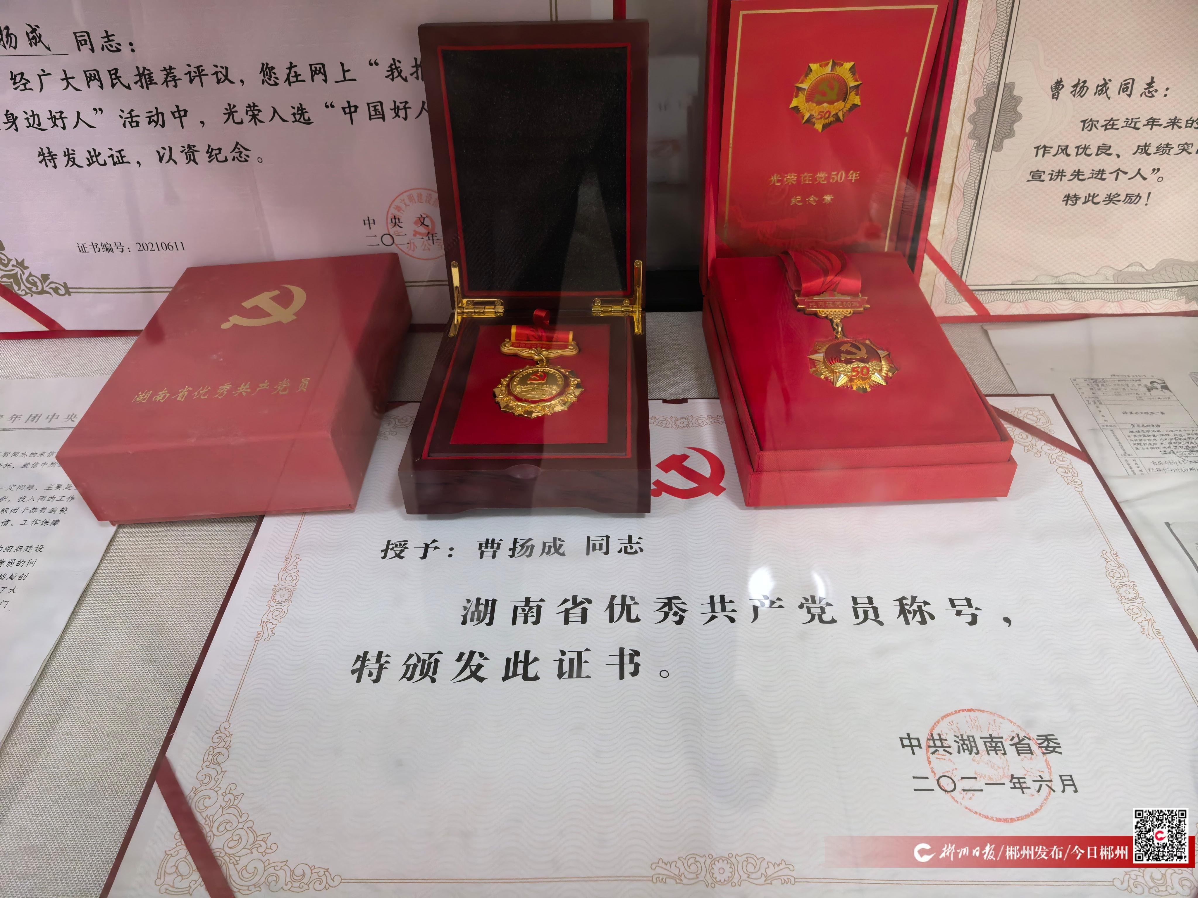 講習(xí)所以曹揚成的名字命名,他是這兒唯一的,也是永遠(yuǎn)的“主講人”。61年黨齡,30萬字學(xué)習(xí)筆記。1997年起自費訂閱黨報黨刊,每本都批注得密密麻麻。2021年當(dāng)選“中國好人”,同年獲“湖南省優(yōu)秀共產(chǎn)黨員”稱號,2023年獲評“湖南省基層理論宣講先進個人”。榮譽摞起來,和他桌上那疊筆記本一樣厚。但曹揚成講得最多的,不是這些。