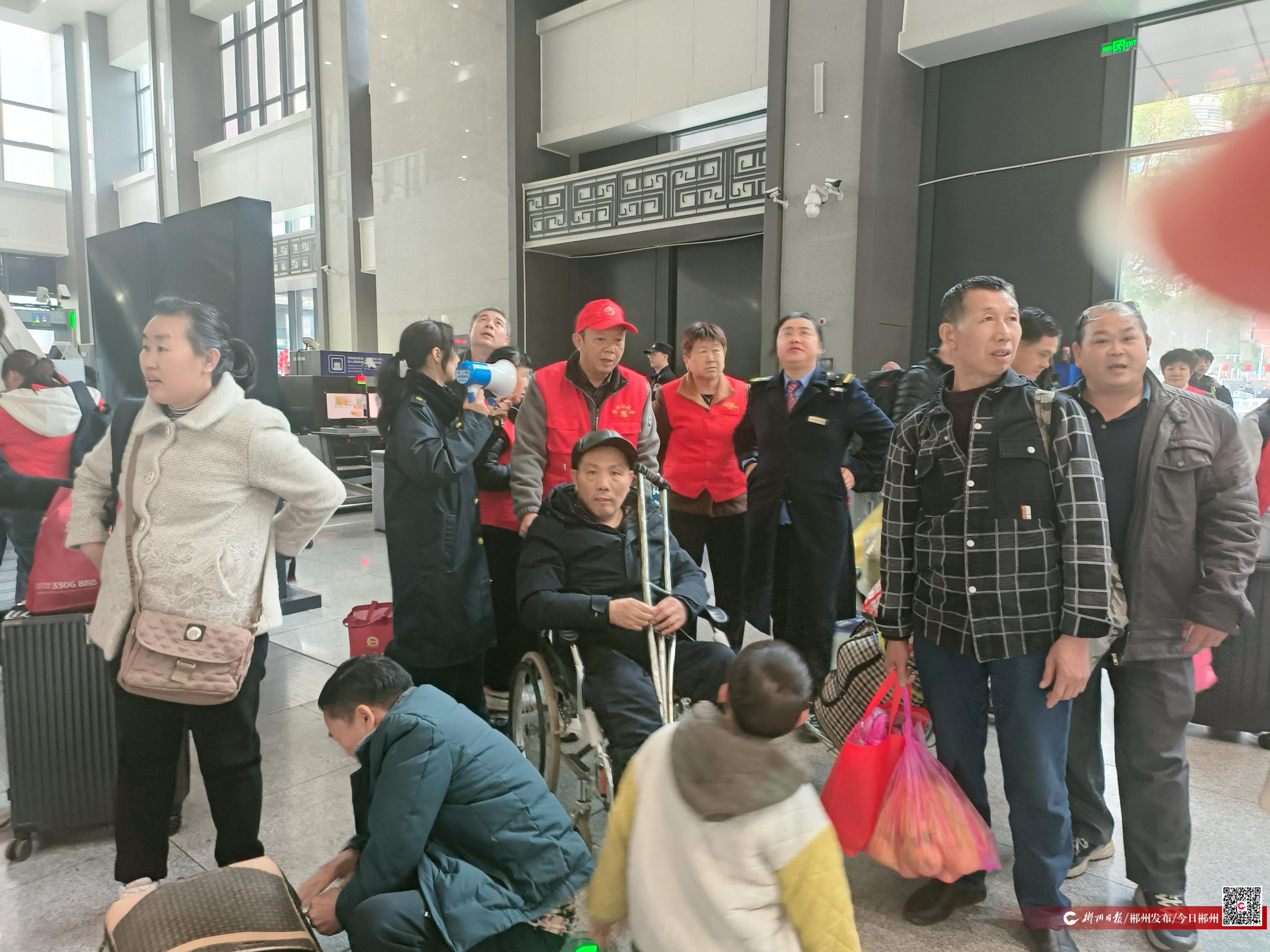 2月27日,記者走進(jìn)郴州火車站,一抹抹鮮艷的“志愿紅”在人群中穿梭,格外引人注目。他們分工明確、配合默契,耐心引導(dǎo)旅客有序進(jìn)出站,細(xì)致講解購票、取票、改簽流程,還主動伸出援手,幫旅客搬運(yùn)行李。面對老弱病殘等特殊旅客,志愿者更是關(guān)懷備至,或攙扶老人緩慢前行,或護(hù)送行動不便者安全進(jìn)站,或貼心照顧帶小孩的家長,用實(shí)際行動詮釋著愛心與擔(dān)當(dāng)。