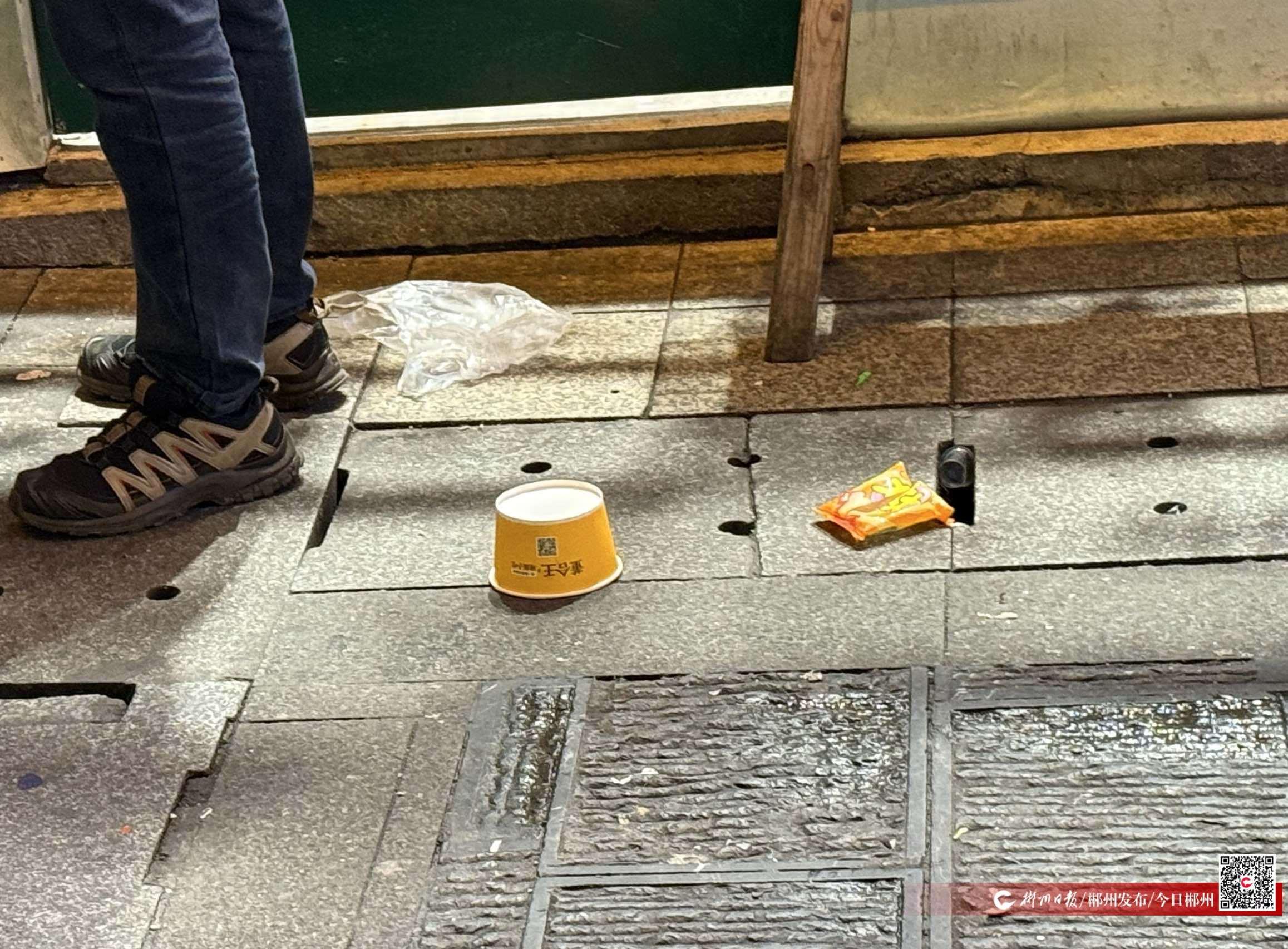 熱鬧繁華的背后,亂扔垃圾等不文明行為卻大煞風(fēng)景。部分游客將小吃包裝袋、竹簽、餐盒等廢棄物隨手丟棄在路面,散落的垃圾不僅破壞了古街雅致的景觀風(fēng)貌,影響游客出行體驗(yàn),更污染了景區(qū)環(huán)境,增加了環(huán)衛(wèi)工作者的清潔壓力。