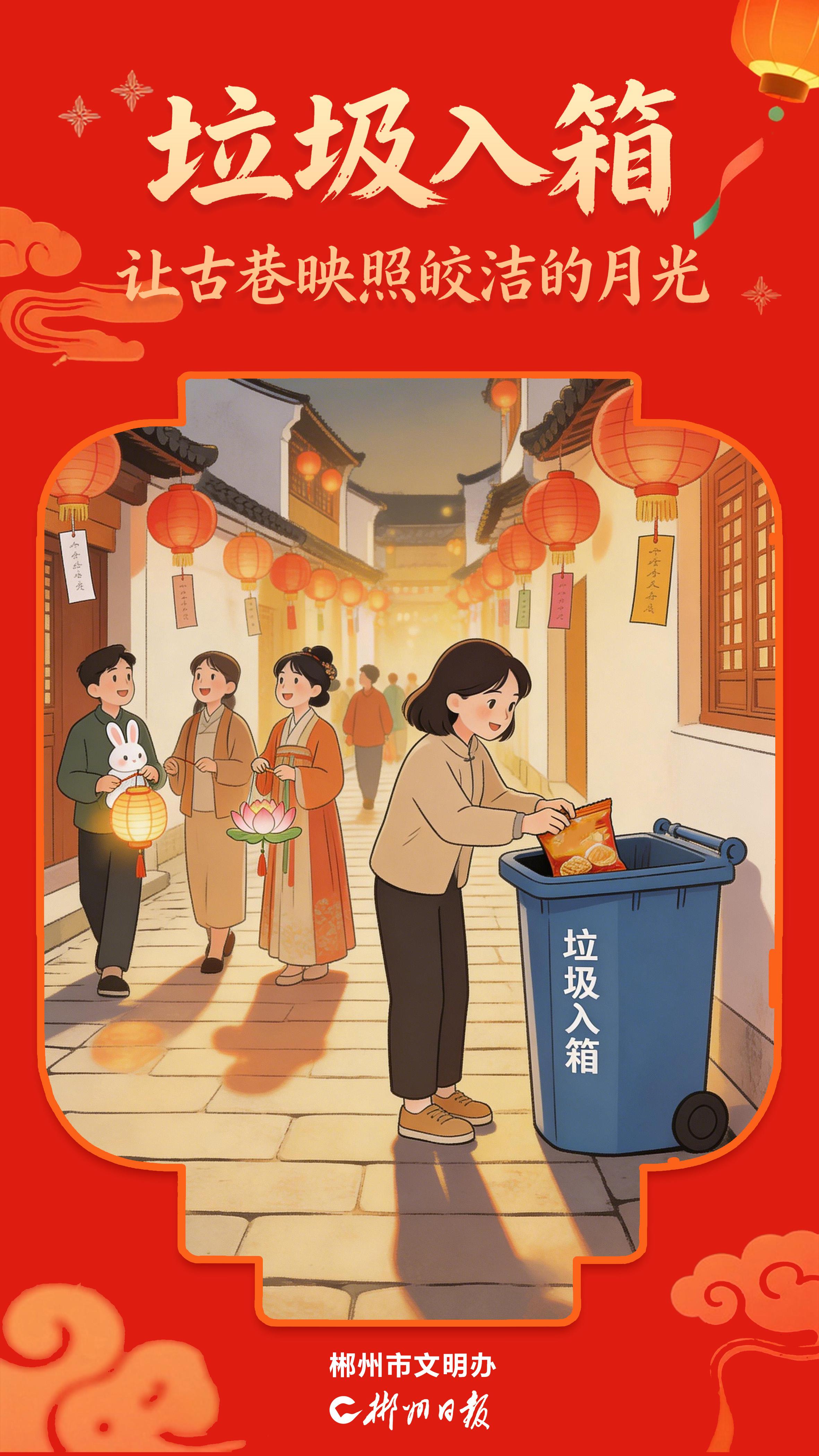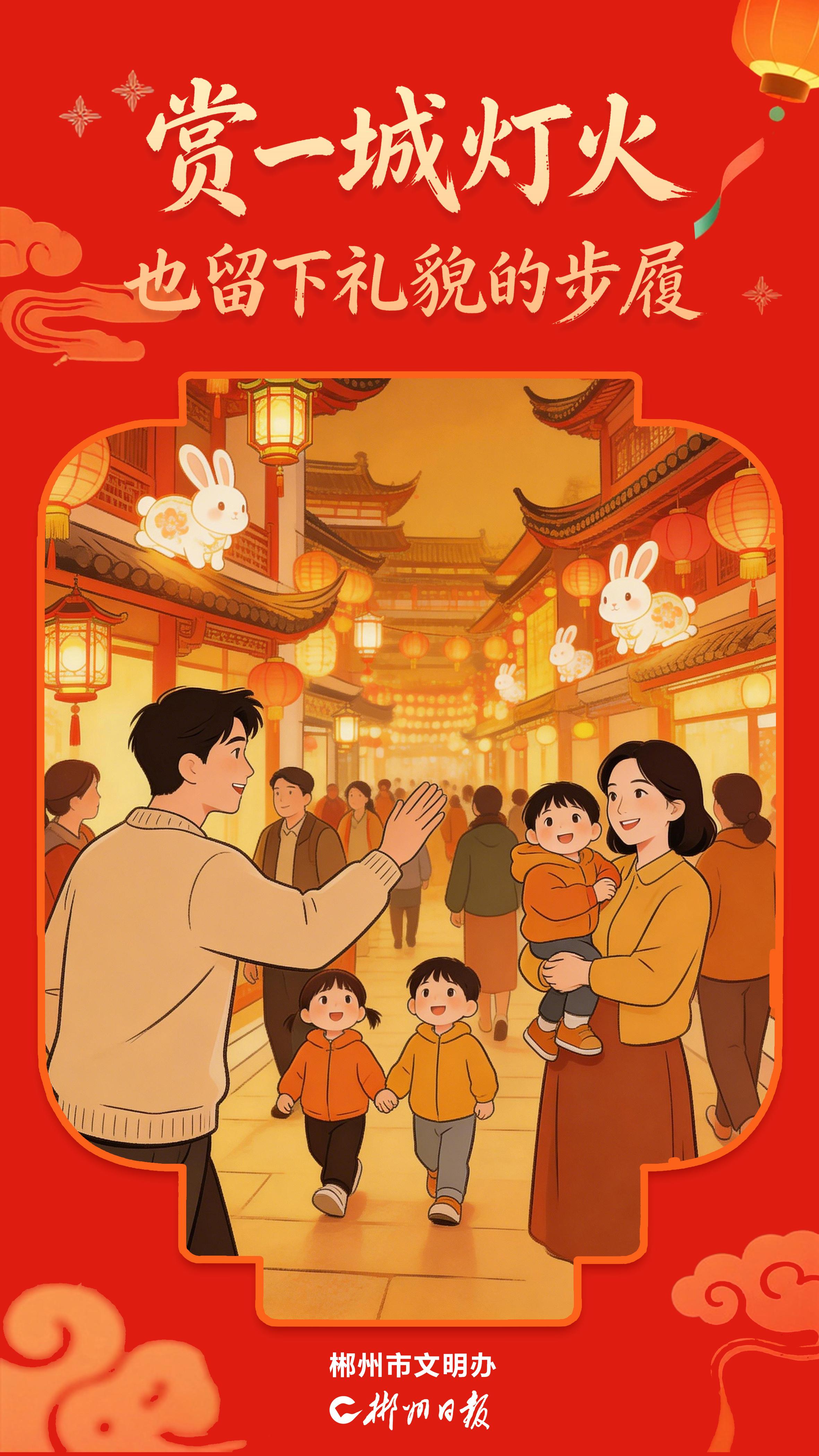 元宵圓滿,不止在碗中甜蜜的湯圓里,更在每一步于郴州街頭相遇的文明足跡里。這個元宵,讓我們的每一次相遇都透著暖意:有序觀燈,讓人潮化作流動的風(fēng)景;攜老扶幼,讓團(tuán)圓浸潤從容的歡喜;垃圾入箱,讓古巷映照皎潔的月光;賞一城燈火,也留下禮貌的步履。