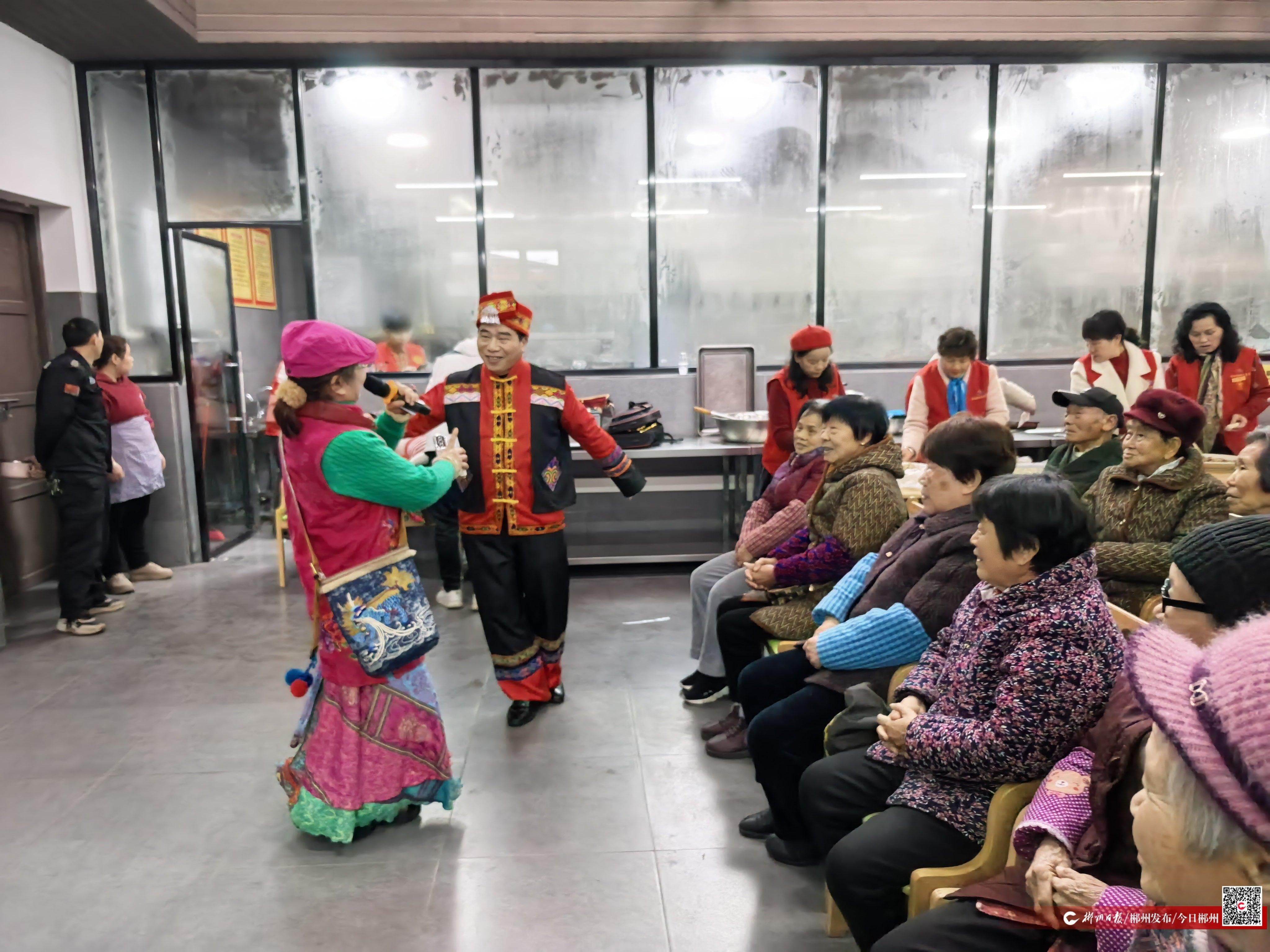 “我家的表叔數(shù)不清,沒有大事不登門……”3月5日,耳熟能詳?shù)木﹦ 都t燈記》經(jīng)典選段在蘇仙區(qū)711時光小鎮(zhèn)長者食堂唱響,婉轉(zhuǎn)唱腔、經(jīng)典橋段引得在場老人頻頻點(diǎn)頭、掌聲不斷。食堂內(nèi)暖意融融,50多名老礦工遺孀齊聚一堂,感受著來自志愿者的暖心關(guān)懷。