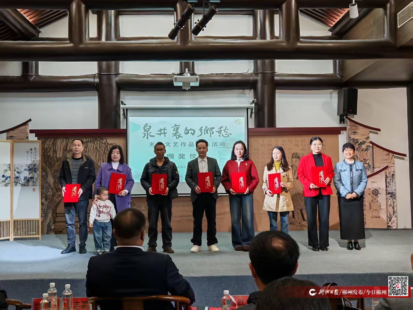 3月22日上午,“泉井里的鄉(xiāng)愁”主題文藝作品征集活動頒獎儀式在愛蓮湖濂溪書院舉行?,F(xiàn)場對評選出的62件優(yōu)秀作品進(jìn)行了集中表彰,獲獎代表與市民朋友齊聚一堂,共同感受郴州水文化的深厚底蘊(yùn)與時代活力。
