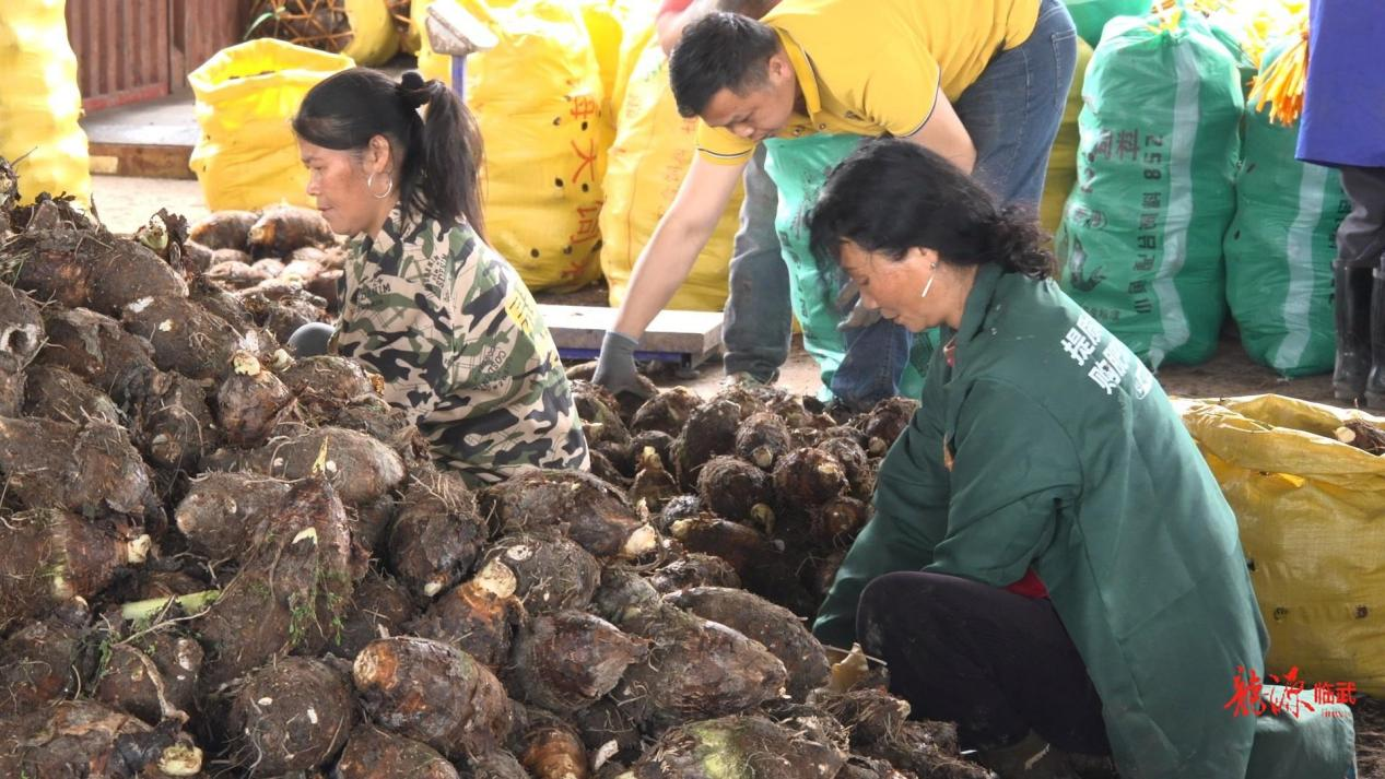 ▲農(nóng)戶將香芋打包裝車