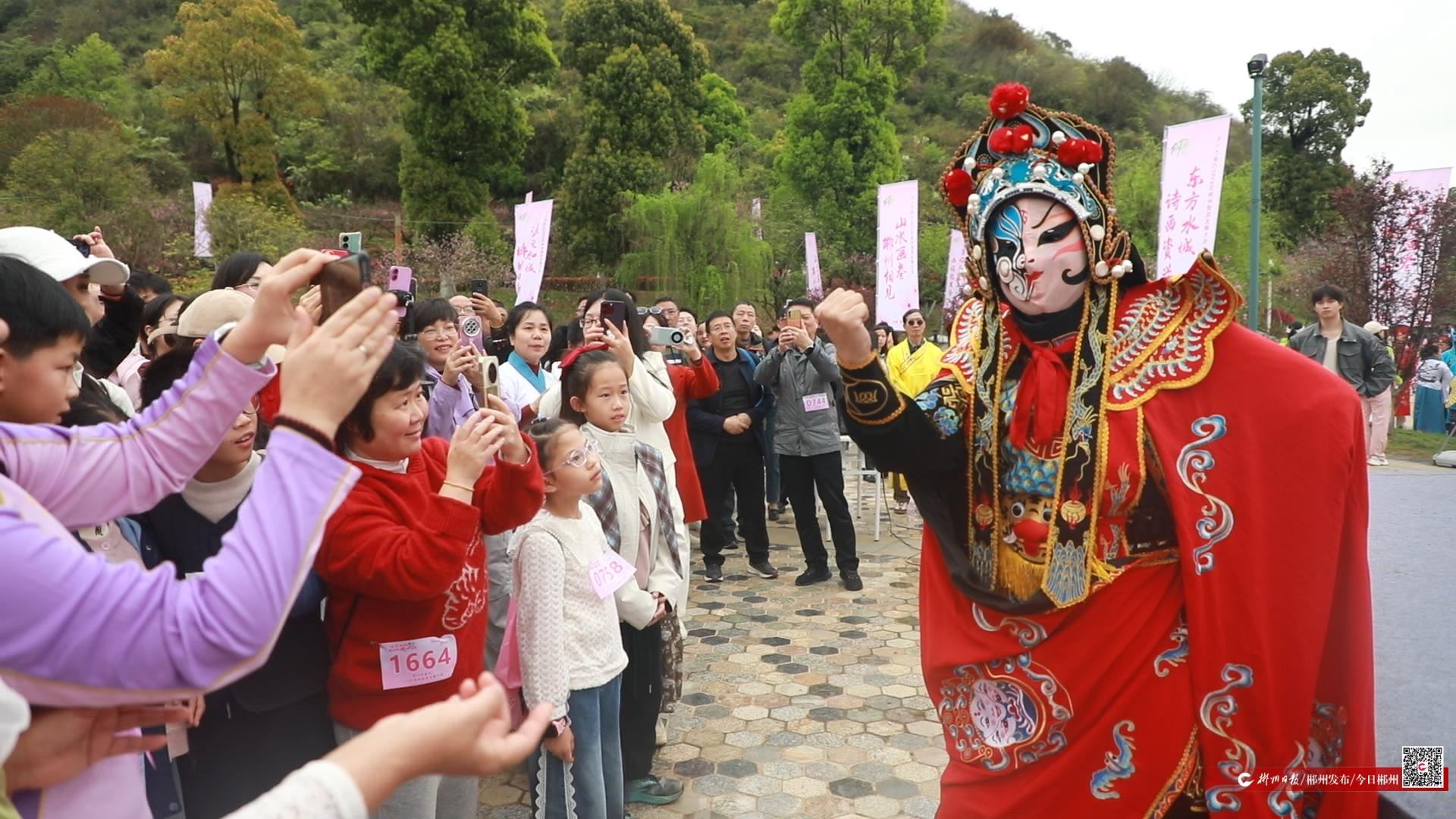 清晨的桃花廣場(chǎng)熱鬧非凡,參與者有序領(lǐng)取定制參賽包和號(hào)碼貼,臉上洋溢著期待。暖場(chǎng)環(huán)節(jié)中,本地民俗歌舞輪番上演,歡快的旋律與優(yōu)美的舞姿贏得陣陣掌聲;漢服小姐姐、“桃花仙子”衣袂翩躚,盡顯東方韻味;川劇變臉節(jié)目驚艷亮相,臉譜變幻莫測(cè),每一次轉(zhuǎn)身都引來(lái)觀眾驚呼,將現(xiàn)場(chǎng)氛圍推向高潮。同時(shí),“最美白廊人”評(píng)選、桃花簽祈福等活動(dòng)同步開(kāi)展,參與者或駐足圍觀、或拍照打卡,廣場(chǎng)上處處洋溢著歡聲笑語(yǔ)。