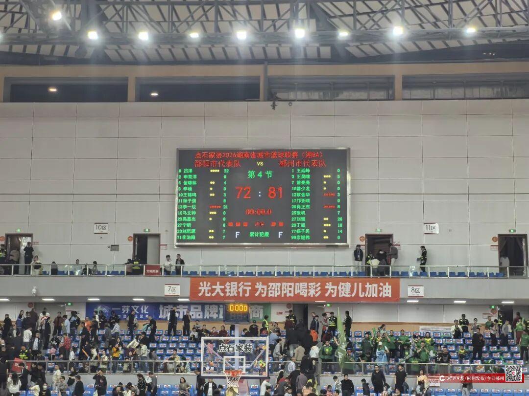 4月4日晚,2026湖南省城市籃球聯(lián)賽(湘BA)常規(guī)賽第二輪焦點戰(zhàn)在邵陽市體育中心火熱開打,客場出征的郴州隊頂住主隊末節(jié)反撲,最終以81:72戰(zhàn)勝邵陽隊,拿下開賽兩連勝,邵陽隊則遺憾遭遇兩連敗。
