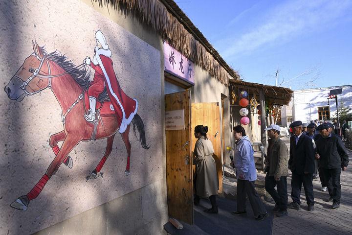 2026年4月3日,人們排隊(duì)進(jìn)入新疆昭蘇縣燈塔知青館嬌龍廳獻(xiàn)花,追憶賀嬌龍同志為當(dāng)?shù)亟?jīng)濟(jì)社會(huì)發(fā)展、文旅品牌打造、農(nóng)牧民增收致富作出的貢獻(xiàn)。新華社記者 胡虎虎 攝